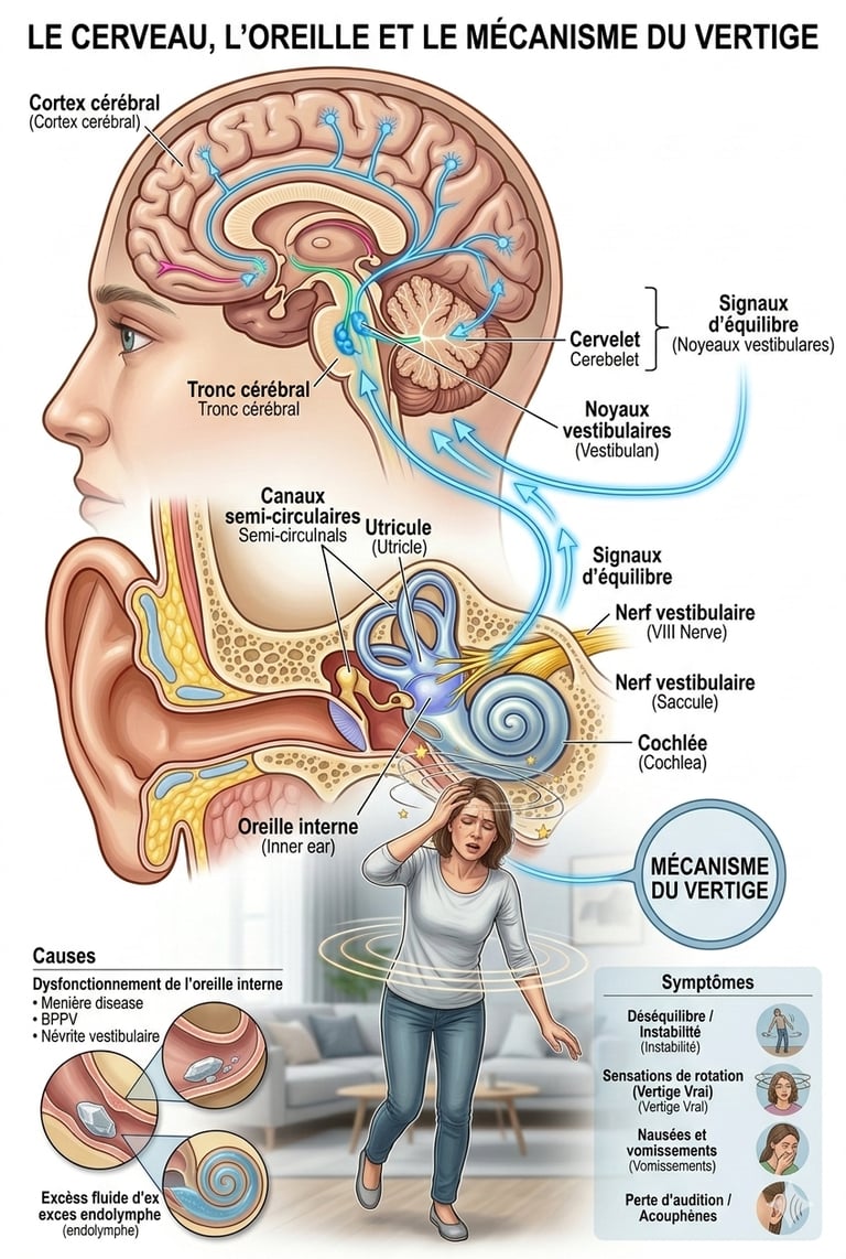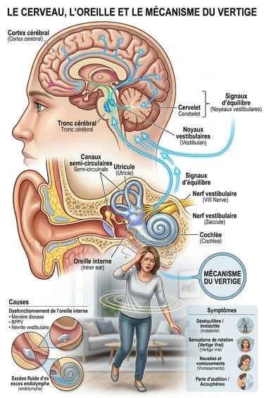 Faire face à une combinaison de stress, de vertiges et de troubles auditifs (acouphènes, hyperacousie) peut créer un cercle vicieux : le symptôme physique génère de l'anxiété, laquelle amplifie la perception du symptôme.